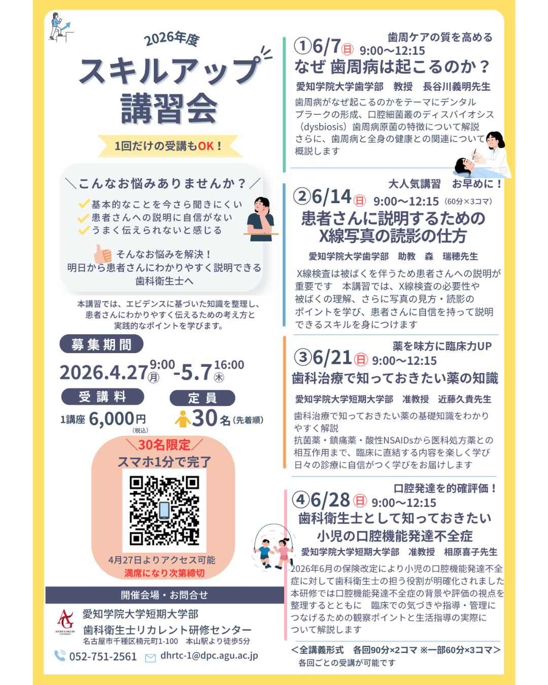 また、復職希望の方や新人歯科衛生士の方など、それぞれご自身の目標に沿ったプログラムを受講することができますので、ご相談ください。